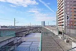 Stattdessen halten die auf der Jōhoku-Linie verkehrenden Züge im südwestlich angrenzenden Stadtteil Kachigawachō an einer provisorischen Haltestelle. Sie besteht aus einem kurzen, teilweise überdachten Seitenbahnsteig, der an die Nordseite des Viadukts angebaut ist. Es gibt kein Empfangsgebäude und die Einrichtung ist sehr spartanisch; eine Treppe führt direkt zur angrenzenden Straße hinunter.