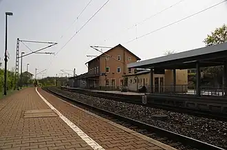 Das Stellwerk ist ein eingeschossiges verbrettertes Fachwerkgebäude mit Satteldach auf offenem Unterbau aus genieteten Stahl-Profilen mit Adresse Bahnhofstraße 5. Das 1902 erbaute und in den 2000er Jahren sanierte Gebäude ist ein inzwischen selten gewordenes Dokument der Technik- und Eisenbahngeschichte und steht deswegen unter Denkmalschutz.[2]