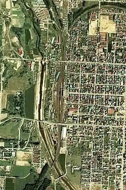 Der Bahnhof am Rande des Stadtzentrums ist von Norden nach Süden ausgerichtet und besitzt drei Gleise. Zwei davon dienen dem Personenverkehr und liegen an einem Mittelbahnsteig. Eine gedeckte Überführung stellt die Verbindung zum Empfangsgebäude an der Ostseite der Anlage her. Auf der Westseite des Bahnhofs stand ein Lokomotivdepot. Es war bis 1974 in Betrieb und wurde danach abgerissen. Erhalten geblieben ist eine umzäunte Drehscheibe.
