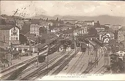 Nachdem die Gleisanlagen im Jahr 1908 umgebaut waren, schrieb man einen «Wettbewerb zur Erlangung von Fassadenentwürfen für das Dienst-, Empfangs- und Restaurationsgebäudes» aus. An diesem Wettbewerb nahmen die beiden Büros Taillens/Dubois und Monod/Laverrière gemeinsam mit zwei Arbeiten teil. Während das Projekt unter Federführung von Taillens und Dubois erstrangiert wurde,[4] gelangte der andere Entwurf auf den dritten Rang.[5] Diesen vier Architekten wurde von der SBB-Kreisdirektion I die Weiterbearbeitung übertragen. Als Grundlage sollte allerdings nicht das erstplatzierte Projekt, sondern das drittplatzierte Projekt dienen.[6] Mit den Bauarbeiten konnte am 1. Januar 1911 begonnen werden, wobei schon am 4. Januar 1911 ein Provisorium für den Personenverkehr in Betrieb genommen werden musste, um das alte Gebäude abbrechen zu können. Der Gebäudeteil des Aufnahmegebäudes konnte am 22. Dezember 1913 in Betrieb genommen werden, der Restaurationsteil am 1. April 1916. Der Flügelbau für den Bahndienst konnte dagegen erst im Herbst 1916 fertiggestellt werden. Das architektonische Vorbild für den Neubau des Bahnhofs war dabei der Hauptbahnhof in Leipzig.[7]