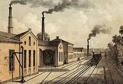 Am Bahnhof von Liljeholmen wurde zwischen 1860 und 1862 Schwedens erste zentrale Werkstatt für die Reparatur von Lokomotiven und Wagen gebaut.[5] Die Werkstätten von SJ wurden Mitte der 1860er Jahre erweitert. Im Laufe der Zeit entstanden Werkstattgebäude, eine Lokleitung, eine Telegraphenwerkstatt, ein Lokschuppen, Lagergebäude sowie Büro- und Übernachtungsräume.