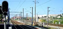 - Die Linha de Sintra hält hier mit ihren Zugläufen Mira-Sintra Meleças/Monte Abraão–Lissabon Oriente–Alverca