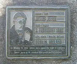 - ↑ Artikel in Mladina zur Einweihung der James Joyce Gedenktafel. ( vom 26. September 2006 im Internet Archive) (slowenisch)