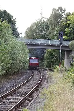 Noch in den 1970er Jahren wies der Bahnhof vier Gleise auf, von denen das talwärtige Streckengleis am Hausbahnsteig, das bergwärtige an einem Zwischenbahnsteig lag. Das östlichste Gleis endete nach Süden hin aber bereits stumpf an einem Prellbock.[13] In der Bahnmeisterei auf der Ostseite des Bahnhofs war eine Draisine stationiert.[14] Parallel zur talseitigen Einfahrt lag auf deren Ostseite noch bis 1991 das südliche Ausziehgleis.[7] 2003 waren nur noch die beiden Streckengleise 1 und 2 vorhanden.[15]