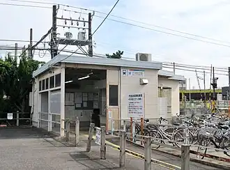 Der Bahnhof steht im Stadtteil Uchisaiwachō in einem gemischten Wohn- und Gewerbegebiet. Die Anlage ist von Westen nach Osten ausgerichtet und umfasst vier Gleise, von denen zwei dem Personenverkehr dienen. Diese liegen an einem Mittelbahnsteig, auf dem ein kleiner Unterstand steht. Hinzu kommen zwei Abstellgleise, wobei an einem die Überreste eines Seitenbahnsteigs zu finden sind, der in den 1960er Jahren abgebrochen wurde. Der Zugang zum Mittelbahnsteig erfolgt durch einen mit Schranken gesicherten Bahnübergang für Fußgänger, der mit dem Empfangsgebäude an der Nordseite verbunden ist. Der Bahnhof ist nicht mit Personal besetzt und wird von Toyotashi aus ferngesteuert. Etwa hundert Meter weiter südlich verläuft auf einem Viadukt die Meitetsu Nagoya-Hauptlinie, an der sich einst der Bahnhof Higashi-Chiryū befand.