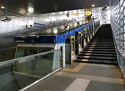 Nur etwa ein drittel der Bahnsteiglänge ist oberirdisch; der Rest befindet sich in zwei parallel verlaufenden Tunneln.