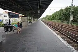 Der Bahnhof besteht aus einem 159 Meter langen Inselbahnsteig in Hochlage mit zwei Bahnsteiggleisen an der ansonsten in diesem Bereich eingleisigen S-Bahn-Strecke. Er wird regelmäßig für Zugkreuzungen genutzt. Die beiden Fernbahngleise führen südlich am Bahnhof vorbei. An beiden Bahnsteigenden führt jeweils eine Treppe in einen mit Oberlichtern versehenen Vorraum, in dem sich früher die Fahrkartenausgaben befanden. Heute werden die Räumlichkeiten von einem Restaurant, Imbissen und einem Blumenladen benutzt. Ausgänge führen zur Karl-Liebknecht-Straße im Westen und zur Wattstraße im Osten.