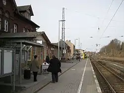 Heute besitzt der Bahnhof einen Bahnsteig, der 100 Meter lang und 55 Zentimeter hoch ist.[1] Der Inselbahnsteig am Gleis 2 wurde zurückgebaut.