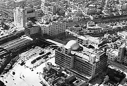 Die wiederaufgebaute Endstation der Toyokō-Linie erhielt 1950 drei Gleise an drei Bahnsteigen (in den Jahren 1961 bis 1964 auf vier Gleise an je zwei Mittel- und Seitenbahnsteigen erweitert).[14] Das Tamaden-Gebäude wurde 1954 durch das elfgeschossige Tōkyū-Kaufhaus ersetzt.[17] Am 28. April 1960 eröffnete die Keiō Dentetsu ein neues Bahnhofsgebäude für die Inokashira-Linie.[15] 1969 erfolgte die Stilllegung der städtischen Straßenbahnlinie und der Tamaden-Vorortstraßenbahn. Als Ersatz für letztere entstand die Shin-Tamagawa-Linie der Tōkyū Dentetsu, die ihren Betrieb am 7. April 1977 aufnahm. Zunächst als eigenständige Linie geführt, ist sie seit dem 16. November desselben Jahres Bestandteil der Tōkyū Den’entoshi-Linie. Mit der am 1. August 1978 eröffneten Hanzōmon-Linie bestand von Anfang an eine Durchbindung.[20] Aus Rationalisierungsgründen stellte die Japanische Staatsbahn am 1. Oktober 1980 den Güterumschlag ein und im Rahmen der Staatsbahnprivatisierung ging der Bahnhof der Yamanote-Linie am 1. April 1987 in den Besitz der neuen Gesellschaft JR East über.