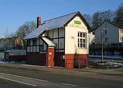 Das Bahnhofsgebäude wurde 1905 auf Fachwerkbasis gebaut.[9] Es steht auf einem Sockel aus Bruchstein. Die Bahnhofswände sind verklinkert. Seit dem 25. Oktober 1984 steht das Bahnhofsgebäude unter Denkmalschutz.[2][9]