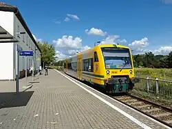 Bahnsteig mit Triebwagen der ODEG, 2012