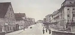 Obere Bahnhofstraße mit der Villa (links) und dem Bankhaus (Mitte rechts) Feustel (vor 1908)
