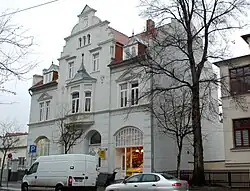 Das Gebäude entstand im Jahr 1900 für den Fotografen Otto Wendt. Die Planung war 1899 durch den Architekten Max Schneck erfolgt, wobei die Umsetzung nur in einem reduzierten Umfang erfolgte. Die Fassadengestaltung zitiert gotische und klassizistische Zierelemente. Besonders markant ist der im Stil der Neorenaissance gestaltete Giebel. Unterhalb dieses straßenseitigen Giebels befindet sich in der Fassadenmitte ein kleiner Erker. Im Jahr 1910 wurde im Erdgeschoss ein Ladengeschäft eingebaut.