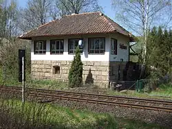Kreuzungsbahnhof Trebgast mit Stellwerksanbau