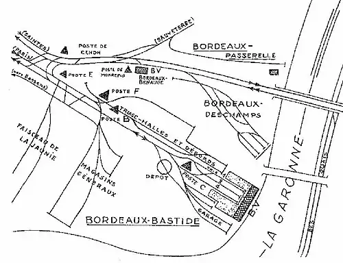 ![]() Lage der Bahnhöfe in Bordeaux, rechtes Ufer | |||||||||||||||||||||||||||||||||||||||||||||||||||||||||||||||||||||||||||||||||||||||||||||||||||||||||||||||||||||||||||||||||||||||||||||||||||||||||||||||||||||||||||||||||||||||||||||||||||||