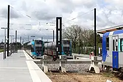 Der Triebwagen aus Rennes (rechts) hat in Châteaubriant Anschluss an den „Tram-Train“ nach Nantes