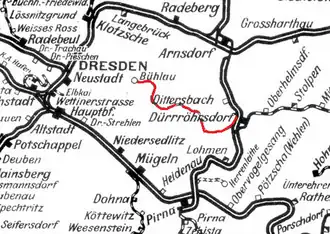 Am 9. Mai 1900 wurde durch den Sächsischen Landtag der Bau einer meterspurigen Sekundärbahn von Bühlau nach Dürrröhrsdorf beschlossen. Dazu wurde auch als Vorleistung ein Dreischienengleis zwischen Dresden und Bühlau gebaut. Später wurde das gesamte Projekt in den Bau einer normalspurigen Linie abgeändert.