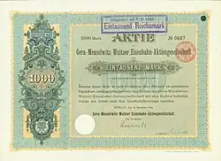 - ↑ a b Dietmar Franz: Die Geschichte der Gera-Meuselwitz-Wuitzer Eisenbahn. Abgerufen am 11. September 2016., S. 12.