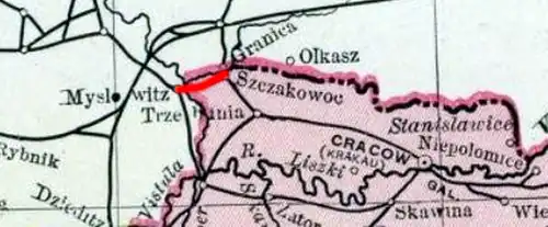 Die Krakau-Oberschlesische Eisenbahn entstand auf Initiative des Senats der Stadt Krakau (Kraków), dem das Privileg zum Bau und Betrieb erteilt wurde. Am 13. Oktober 1847 ging die Gesamtstrecke von Krakau bis Myslowitz (Mysłowice) in Betrieb.[1] Ab 1848 stellte sie eine Verbindung zwischen der Warschau-Wiener Eisenbahn und der preußischen Oberschlesischen Eisenbahn dar. Dadurch verband sie sowohl Krakau als wichtigste Stadt im damals österreichischen Teil Polens als auch Warschau als wichtigste Stadt im damals russischen Teil Polens mit dem mitteleuropäischen Eisenbahnnetz. Erst 1856 entstand eine nur über österreichisches Gebiet führende Verbindung von Wien nach Krakau. 1850 erfolgte die Übernahme durch die k.k. Östliche Staatsbahn. 1858 wurde der Betrieb von der Kaiser-Ferdinands-Nordbahn übernommen.
