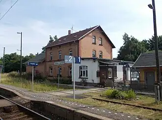 - ↑ Manfred Berger: Historische Bahnhofsbauten I – Sachsen, Preußen, Mecklenburg und Thüringen. 2., durchgesehene Auflage. transpress Verlag, Berlin 1987, ISBN 3-344-00066-7, S. 62.