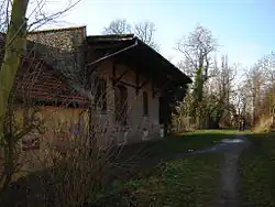 Das ehemalige Empfangsgebäude des Endbahnhofs Westhofen lag nördlich der Gleise und ist erhalten.