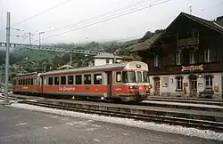 Pendelzug mit Be 4/4 151 und zugehörigen Steuerwagen aus dem Jahr 1977 in Montbovon