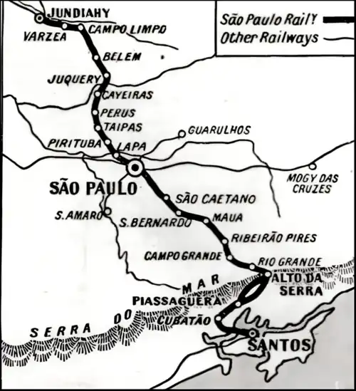 - ↑ a b A gateway to Brazil: The Trunk Line that Climbs a Precipice. In: Railway Wonders of the World. Volume 1, 16 und 17. Amalgamated Press, 1935, S. 515–516, 517–524 (englisch, railwaywondersoftheworld.com).