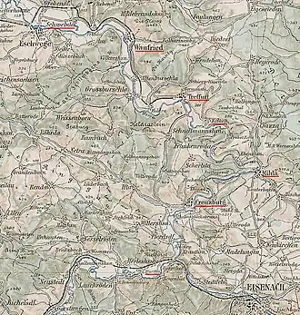 - ↑ Günter Fromm: Treffurt und seine Eisenbahnen, Verlag Rockstuhl, 1993, ISBN 978-3-929000-40-5, S. 22 ff.