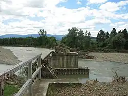 Zerstörte Brücke über den Poprad nach dem Hochwasser vom 4. Juni 2010