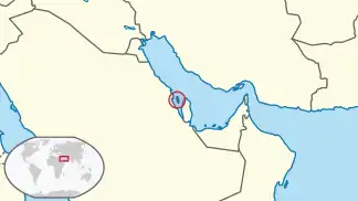 Das Königreich Bahrain [] (arabisch البحرين al-Bahrain, DMG al-Baḥrayn, lokale Aussprache []) ist ein aus 33 Inseln bestehender Staat in einer Bucht im Persischen Golf in Vorderasien, östlich von Saudi-Arabien und westlich von Katar (ca. 35 km Luftlinie). Die Fläche des Archipels ist rund 750 km² (nach künstlichen Aufspülungen). Der Name al-Bahrain bedeutet im Arabischen „die zwei Meere“.