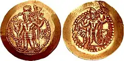 - ↑ Fabrizio Sinisi: Royal Imagery on Kushan Coins: Local Tradition and Arsacid Influences. In: Journal of the Economic and Social History of the Orient 60/6 (2017), S. 818–927, hier S. 847.