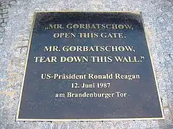 Westlich des Balanceaktes befindet sich seit dem 12. Juni 2012 eine Gedenktafel für Ronald Reagan, die zum 25. Jahrestag an seine berühmten Worte vor dem Brandenburger Tor erinnert: „Mr. Gorbatschow, open this gate. Mr. Gorbatschow, tear down this wall.“[4]
