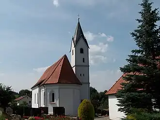- Die katholische Filialkirche St. Johannes d. T. ist eine Saalkirche mit eingezogenem Chor. Turm und Chor sind spätgotisch und stammen aus der Zeit um 1447. Das Langhaus wurde im Jahr 1764 fertiggestellt. Der nordseitige Turm trägt einen Spitzhelm.