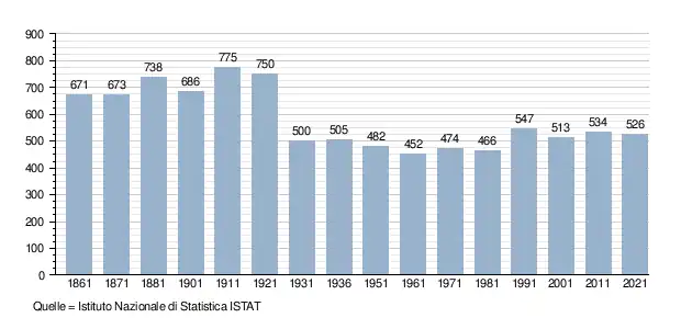 - ↑ Bilancio demografico e popolazione residente per sesso al 31 dicembre 2024. ISTAT. (Bevölkerungsstatistiken des Istituto Nazionale di Statistica, Stand 31. Dezember 2024).