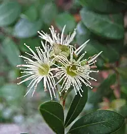 Die männlichen Blüten sind bis 2,5 Millimeter lang gestielt, die weiblichen Blüten sind sitzend.[2] Es sind keine Kronblätter vorhanden. Die Staubfäden sind 4 bis 6 Millimeter lang und die Staubbeutel 2 bis 2,5 Millimeter lang.[2]