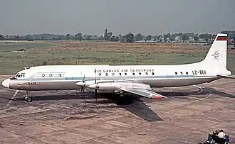 Das Flugzeug war eine im Jahr 1966 gebaute Iljuschin Il-18 D mit der Werknummer 186009002, die am 24. April 1966 an die TABSO, die spätere Balkan Bulgarian Airlines, ausgeliefert wurde. Das viermotorige Langstrecken-Passagierflugzeug war mit vier Turboproptriebwerken des Typs Iwtschenko AI-20K ausgestattet. Bis zum Zeitpunkt des Unfalls hatte die Maschine 8.622 Betriebsstunden absolviert, auf die 3.136 Starts und Landungen (= Flugzyklen) entfielen.