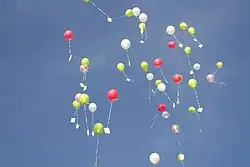 Ein Ballonflugwettbewerb oder Ballonwettbewerb ist ein Wettbewerb, bei dem es gilt, Ballonpost über möglichst große Entfernungen zu verschicken.[1] Da der Flug der verwendeten Luftballons nicht beeinflussbar ist, ist das Ergebnis – sofern alle gestarteten Ballons gut mit Wasserstoff oder Helium gefüllt sind – von den Windbedingungen und von der Wahrscheinlichkeit, dass der Ballon am Niedergangsort gefunden wird, abhängig. An jedem Ballon wird eine Karte mit der Anschrift des Absenders angebracht. Wer eine solche Karte findet, schickt sie zusammen mit einer Angabe des Fundortes an den Veranstalter des Wettbewerbs zurück. Gewonnen wird der Wettbewerb von dem Teilnehmer, dessen Ballon unter allen zurückgeschickten Karten am weitesten vom Startort entfernt gefunden wurde.