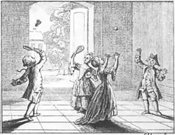 Ballspiele waren bereits seit dem Altertum beliebt und in Europa weit verbreitet. Bereits Homer schildert in der Odyssee, wie Nausikaa, die Tochter des Phaiaken-Königs Alkinoos, und ihre Mägde Ball spielen und dabei den in einem Gebüsch schlafenden Odysseus wecken.[3] Ballspiele wurden besonders von der Oberschicht, dem Adel und vom Bürgertum gespielt. Auf Schloss Runkelstein bei Bozen ist auf einem Wandgemälde aus der Zeit um 1395 ein dem Völkerball ähnliches Ballspiel dargestellt.
