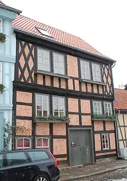 Das große Fachwerkhaus entstand in der Zeit um 1680. Im Quedlinburger Denkmalverzeichnis ist das Haus als Wohnhaus eingetragen. Das Gebäude verfügt über ein Zwischengeschoss. Die Fachwerkfassade des Obergeschosses weist als Fachwerkformen Rautenkreuze und die Thüringer Leiter auf.