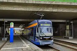 Straßenbahn in Leipzig am S-Bahnhof Messe
