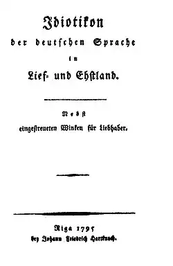 - August Wilhelm Hupel: Idiotikon der deutschen Sprache in Lief- und Ehstland. Verlag Hartknoch, 1795.