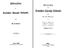 - ↑ Woldemar von Gutzeit, Wörterschatz der Deutschen Sprache Livlands, 1. Band, Riga, 1864, S. III.