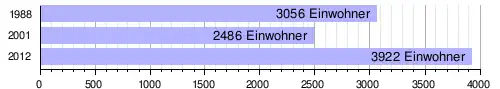 Im Hauptort lebten bei der Volkszählung 2012 3922 Einwohner in 535 Haushalten,[2] bei der Volkszählung 2001 2486 in 326 Haushalten[14] und bei der Volkszählung 1988 3056 in 404 Haushalten.[15]
