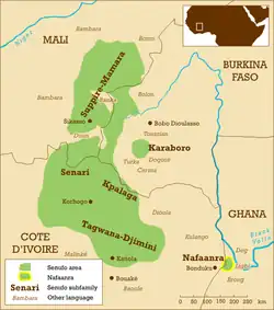 Die Banafo leben mit einer Bevölkerung zwischen 61.000 und 65.000 südlich des schwarzen Volta östlich der Stadt Bondoukou in der Elfenbeinküste.