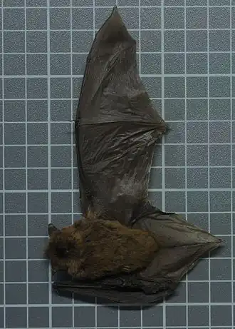 Museumsexemplar von Neoromicia nanus stampflii, gesammelt am Mukanda River, Shimba hills, Kwale Kenya, (kust) Afrika. | ||||||||||||