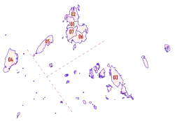 Eine Übersichtskarte im Maßstab 1:900.000 findet sich auf der letzten Seite des E-Books zum Gesetz über die Bildung des Regierungsbezirks Banggai Laut.[3] Die Anzahl der Inseln unterliegt groß Schwankungen, Dalam Angka 2021 nennt 159 Inseln, nomor.net[4] 125. Das E-Book des indonesischen Innenministeriums[5] nennt 282.
