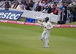 2003 bestritt Bangladesch sieben weitere Tests und elf ODIs gegen Australien, Pakistan und England, verlor jedoch alle Spiele. Im September stand das Team kurz davor, seinen ersten Testsieg zu erzielen, als es gegen Pakistan mit einem Wicket unterlag. Dies war erst das zehnte Mal, dass eine Mannschaft einen Test mit einem Wicket verlor.[41] In der Testserie gegen Pakistan war Alok Kapali der erste Spieler Bangladeschs, der einen Hattrick erzielte, nachdem er Shabbir Ahmed, Danish Kaneria und Umar Gul nacheinander ausgebowlt hatte.[42] Vor der Tour nach Simbabwe im Februar und März des darauf folgenden Jahres wurde Mahmud aus der Mannschaft entlassen und der Batter Habibul Bashar neuer Mannschaftskapitän.[43] Bangladesch verlor die Testserie mit 0–1 und die ODI-Serie mit 1–2.[44] Der zweite Test wurde nach drei Tagen Regen ohne Spielfortschritt als Remis gewertet[45] und beendete die Niederlagenserie von 21 Tests seit November 2001, ein Negativrekord im Test Cricket.[46] Der einzige Sieg in der ODI-Serie war Bangladeschs erster Sieg seit dem Erfolg gegen Pakistan bei der Weltmeisterschaft 1999.[47]