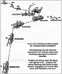 - Versenkung des U-Boots U 41 (ebenfalls durch die Baralong)[3]