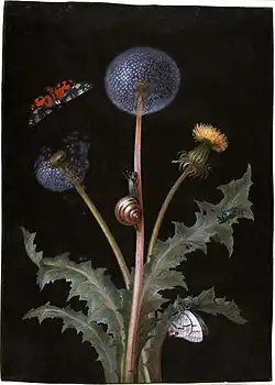 - b) Ein Zweig der Passionsblume mit Blüthe, Knospen und einigen Insecten.[2]
