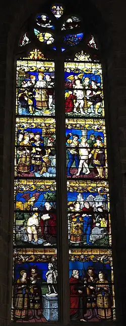 Maßwerk mit der Jahreszahl 1538 (links unten); weitere Szenen aus dem Leben der heiligen Barbara